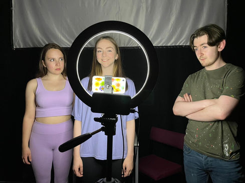 A thought provoking Fringe debut, written by Blue McElroy and directed by Grace Baker. Smile. [Like You’re Happy] explores the growing dissonance between our public and private lives through the topics of mental health and intimate partner violence in the age of social media and social isolation. #Follow Kate (Robyn Reilly), a recent university graduate, as she tries to navigate the world of a new relationship, self expression and social media. Not only is she battling these external forces, she also has to appease the voice of her nagging Mother- who displays herself as Kate’s internal alter-ego (Jess Ferrier). Kate is advised to share her mental health journey online by her new boyfriend Patrick (John Whyte), with the support of his younger brother Grem (Lex Joyce). This emerging cast of talented actors makes this show one to watch.